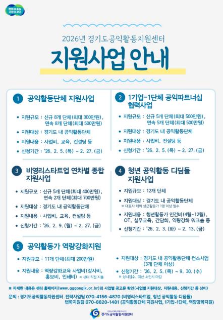 | ▲ 2026년 경기도공익활동지원센터 지원사업 안내 |