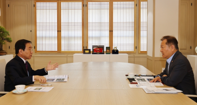 [뉴스서울] 김문근 단양군수는 지난 18일 이상민 행정안전부 장관을 만나 단양군 현안 사업을 건의했다.