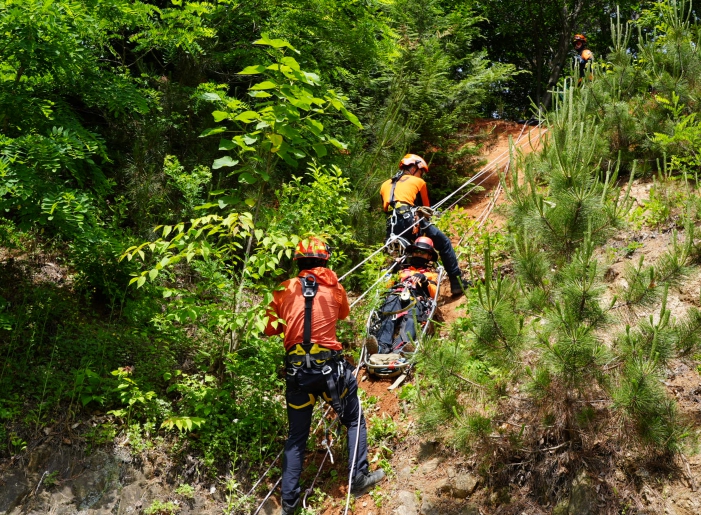 이날 훈련은 산악사고 유형 중 가장 큰 비중을 차지하는 실족, 추락, 조난 사고 발생 시 구조대원의 인명구조 전문성과 대응능력을 높이기 위해 이뤄졌다.