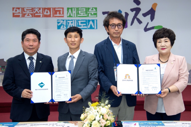 이날 협약식에는 김창규 제천시장, 이정임 제천시의회 의장과 양 도시의 주민자치위원 40여 명이 참석한 가운데 상호교류와 협력을 위한 협약서에 서명했다.
