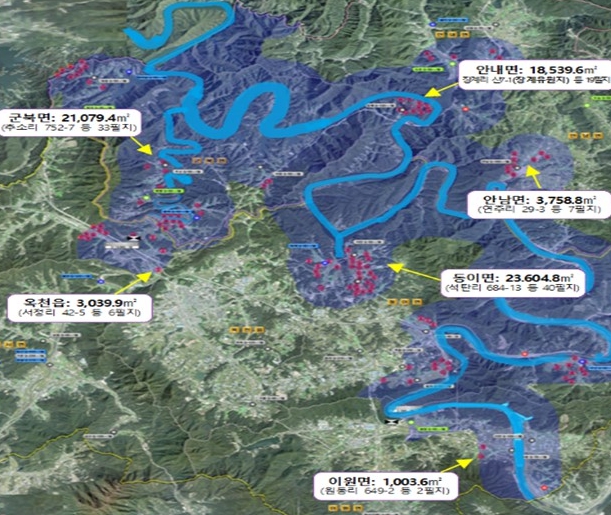 2002년 환경부가 수질 보전을 위해 수변구역을 지정한 이래 22년 만에 해제되는 것으로 옥천군(6개 읍․면) 107필지, 71,026㎡가 해제돼 수변구역 면적이 128.243㎢로 축소된다.