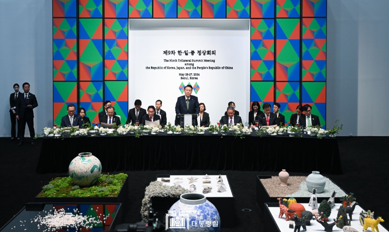 [뉴스서울] 윤석열 대통령은 5월 26일 서울에서 제9차 한·일·중 정상회의에 참석한 기시다 일본 총리와 리창 중국 총리를 비롯한 3국 대표단을 환영하는 만찬을 함께했다.