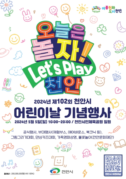 [뉴스서울] 천안시가 제102회 어린이날을 맞아 오는 4일부터 10일까지 7일간시민체육공원 등에서 ‘천안어린이 행복주간’을 운영한다.