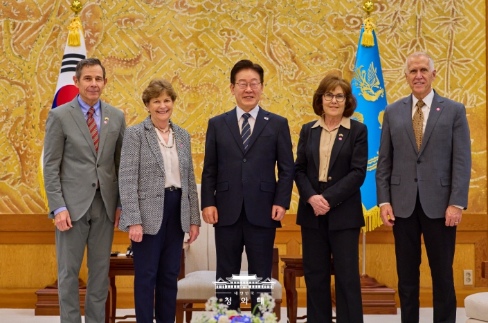 [뉴스서울] 이재명 대통령은 4월 2일 오후 청와대에서 진 섀힌(Jeanne Shaheen) 상원 외교위원회 간사 등 공화·민주 양당 의원으로 구성된 미국 상원의원 대표단을 접견했다. 이 대통령과 미 대표단은 한미동맹 및 한반도 문제를 비롯해 중동 전쟁의 안보적·경제적 파장과 대응 방안에 대해 심도 있는 의견을 교환하고, 향후 경제적 여파 대응 과정에서 한미가 긴밀히 소통해 나가는 것이 중요하다는 점에 뜻을 같이 했다.