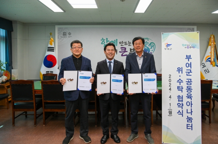 [뉴스서울] 부여군은 지난 1일 부여군 공동육아나눔터 운영을 위하여 백강문화사회적협동조합(이사장 김옥수), 규암농업협동조합(조합장 정동현)과 위수탁 업무협약을 체결했다.
