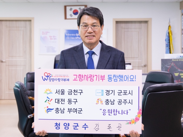 김돈곤 군수는 “고향사랑기부제 동참으로 자매도시 등 상생을 기원하는 한편, 청양사랑기부제 활성화를 위해 기부에 동참했다” 며“지역 소멸 위기 극복을 위해 청양군에 많은 관심과 사랑을 갖기를 바란다”고 전했다.