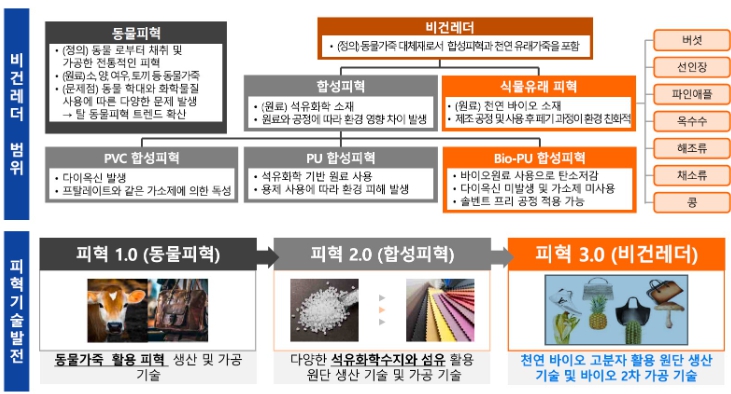▲ 비건레더 범위 및 피혁기술 발전 단계 |