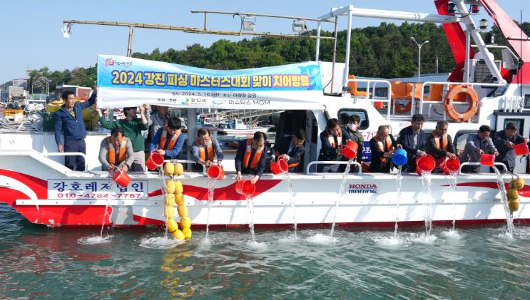[뉴스서울] 강진군이 지난 10일 마량면 해상에서 서순철 강진 부군수, 강진군의원, 수협 조합장, 낚시대회 준비위원 회원, 어업인 등 25명이 참석한 가운데 올 6월부터 11월까지 주기적으로 개최될 2024 강진 피싱 마스터스대회 준비해 감성돔 치어 12만 마리와 낙지 치어 3,000마리를 방류했다.