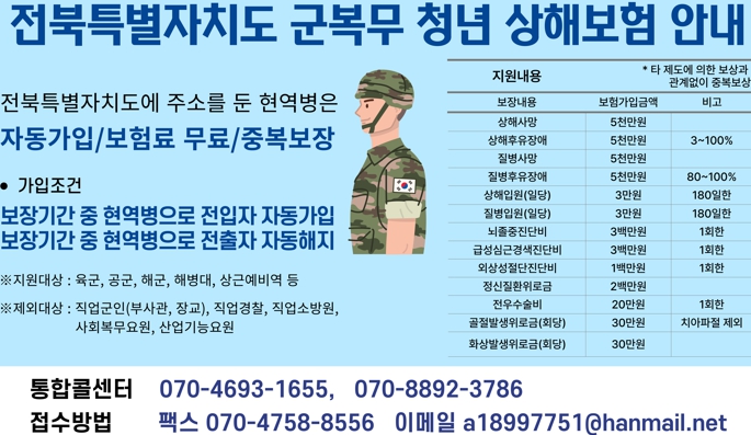 ▲ 전북자치도, 군복무 청년 상해보험 무료가입 큰 호응 |
