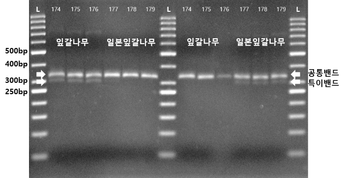 | ▲ 잎갈나무-일본잎갈나무 목재 수종식별 DNA 분석기술 활용 결과 예시 |