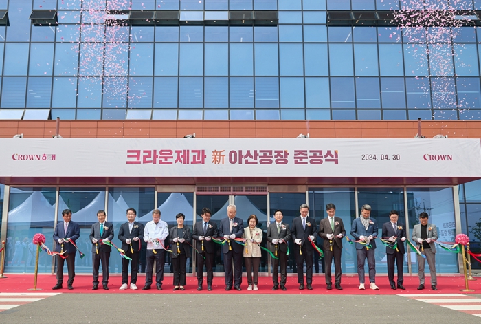 이날 준공식에는 윤영달 ㈜크라운해태홀딩스 회장, 윤석빈 ㈜크라운제과 대표 등 회사 관계자와 임직원, 박경귀 시장, 강훈식 국회의원, 김희영 아산시의회 의장 등 내외빈 100여 명이 참석했다.