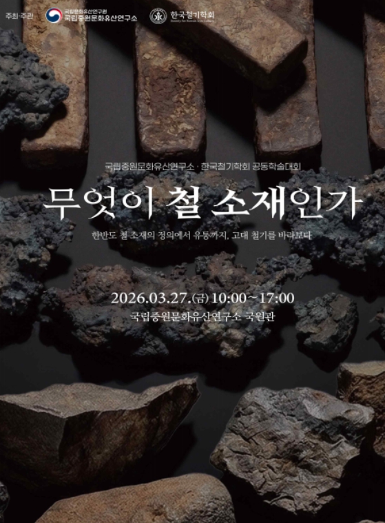 [뉴스서울] 국가유산청 국립문화유산연구원 국립중원문화유산연구소는 한국철기학회와 함께 2026년 3월 27일 오전 10시 국립중원문화유산연구소 국원관에서『무엇이 철 소재인가?』를 주제로 공동 학술대회를 개최한다.