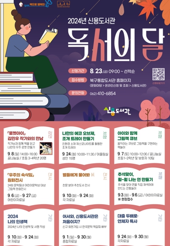 또한 운암도서관은 ▲우리 가족 독서 노트 만들기 ▲회원증 지갑 만들기 ▲예술가 일대기 도서 전시 등 8개 프로그램, 양산도서관은 ▲‘떨어져라, 떨어져, 찰딱폰!’ 저자 함지슬 작가와의 만남 ▲떡 모양 입욕제 만들기 ▲가을 여행 도서 전시 등 8개 프로그램이 운영된다.