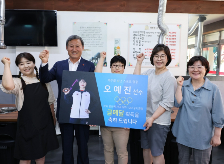7월 29일 오후, 오예진 선수의 부친과 통화한 김완근 제주시장은 “생애 첫 올림픽 무대에서 당당히 사격 여자 10m 공기권총 종목에서 올림픽 신기록을 세우고 금메달을 목에 건 제주의 딸 오예진 선수와 가족에게 제주시 50만 시민의 마음을 담아 진심으로 축하드린다”며 메시지를 전했다.