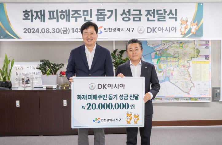 [뉴스서울] 인천 서구는 8월 30일, DK아시아로부터 이웃돕기 성금 2,000만 원을 전달받았다고 밝혔다.