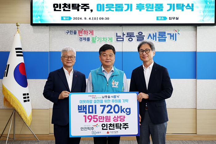 [뉴스서울] 인천시 남동구는 최근 인천탁주로부터 지역 내 취약계층을 위한 추석맞이 백미 720kg(195만 원 상당)을 기탁받았다고 6일 밝혔다.