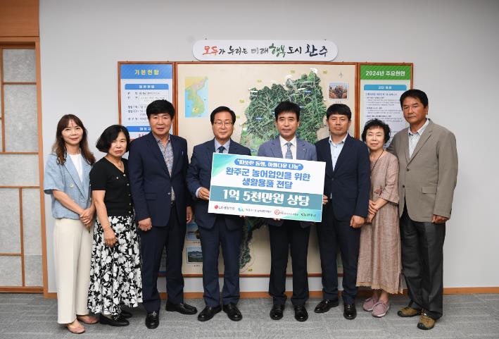 완주군에 기탁한 물품은 LG생활건강과 대중소기업농어업협력재단에서 후원한 물품으로 샴푸, 치약, 주방세제, 세탁세제 등의 생활용품으로 구성됐다. 군은 관내 농업인 및 취약계층 주민에게 배분할 예정이다.