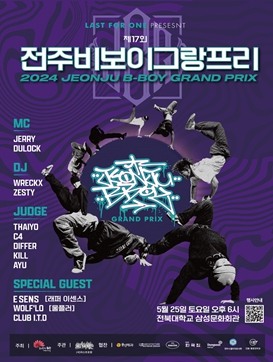전주시와 (사)라스트포원은 오는 5월 25일 오후 6시 전북대 삼성문화회관에서 ‘제17회 전주 비보이 그랑프리’를 개최한다.