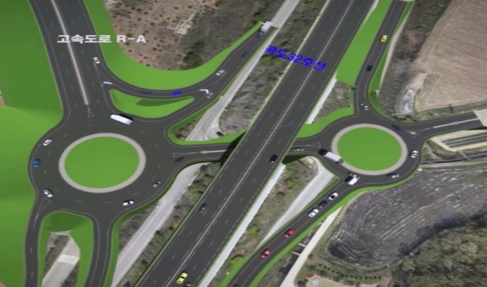 ▲ (교차로 분석) 고속도로 나들목 진출입부 원형교차로에 대한 교통흐름 사전 시뮬레이션 |