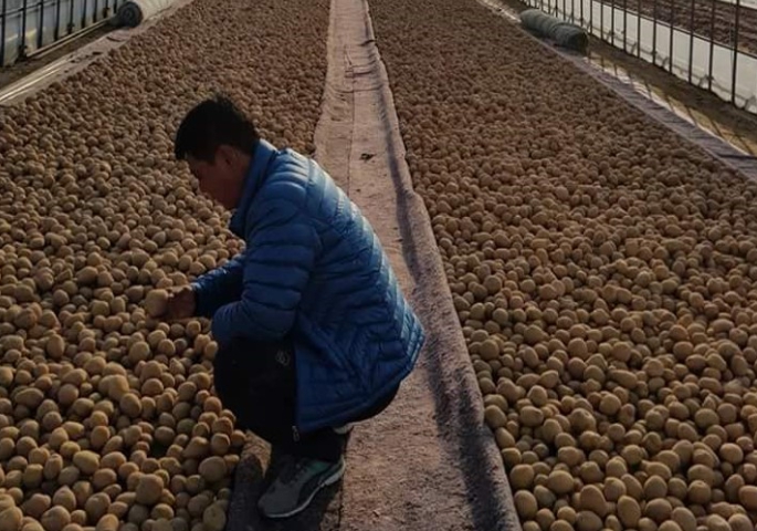▲ 씨감자 그늘 싹틔우기 방법(바닥에 얇게 펴기) |