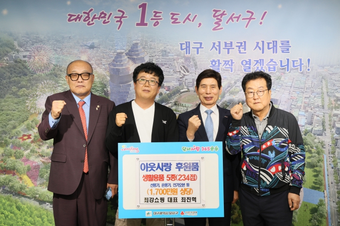 [뉴스서울] 대구 달서구가 22일 최강쇼핑으로부터 선풍기, 전기 오븐 등 생활가전 234점(환가액 1,700만원 상당)을 기탁받았다고 밝혔다.