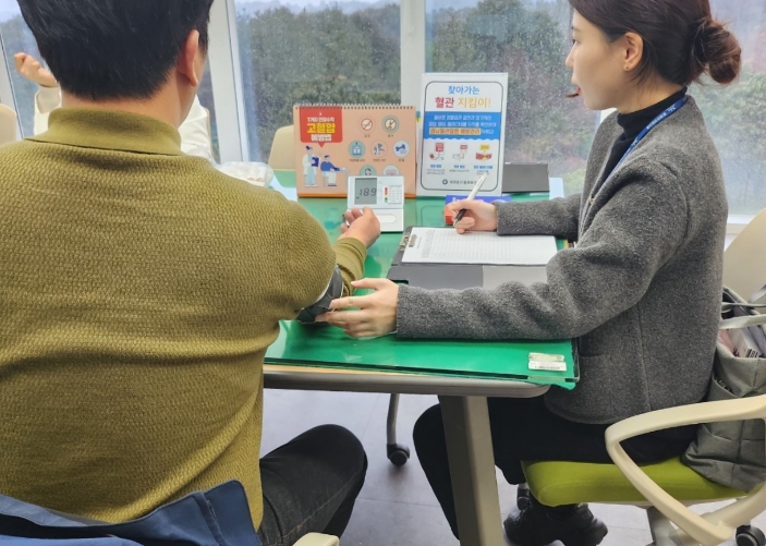 찾아가는 혈관지킴이 사업은 고혈압 예방관리에 필수인 ‘금연 실천’을 도와주는 보건사업과 연계하여 진행되며, 현재 5개 사업장에서 직장인을 대상으로 주기적으로 혈압과 혈당을 측정·상담하고 있다.