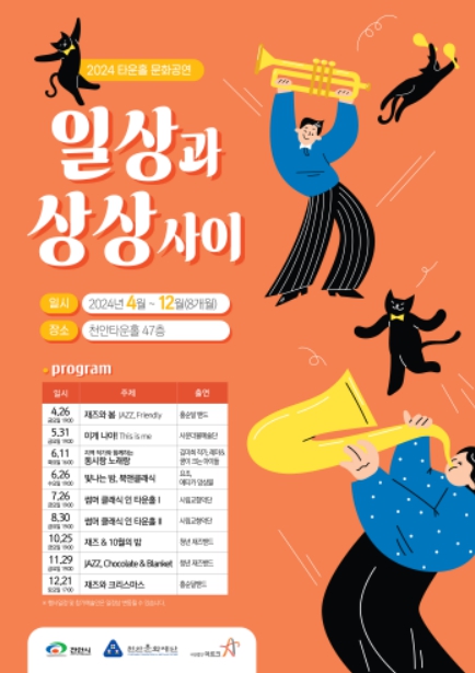 시는 올해 12월까지 ‘일상과 상상사이’라는 주제로 천안 타운홀에서 매월 1회 재즈, 교향악, 북콘서트 등 다양한 문화공연을 개최한다고 26일 밝혔다.