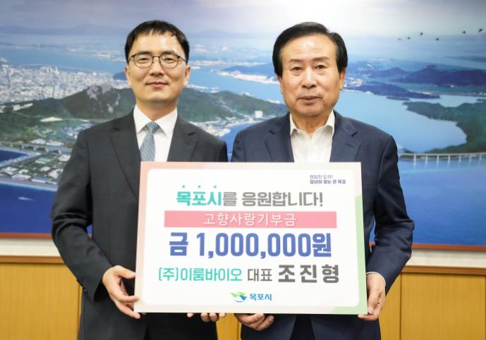 [뉴스서울] 주식회사 이룸바이오 조진형 대표가 목포시에 고향사랑기부금 100만원을 기탁했다.