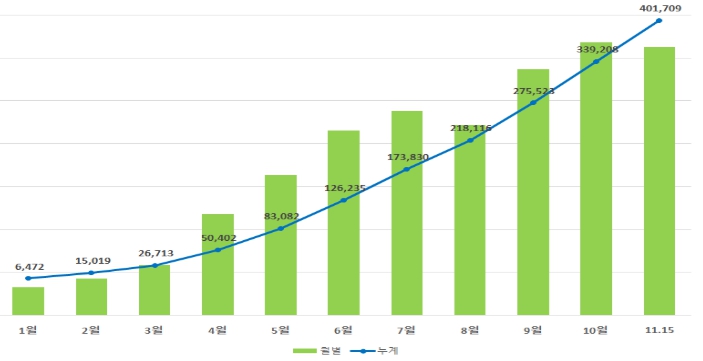 [뉴스서울] 농림축산식품부에서 개설하여 한국농수산식품유통공사가 운영 중인 '농수산물 온라인도매시장'의 올해 거래금액이 지난 11월 15일 4,000억원을 돌파했다.