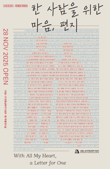 [뉴스서울] 통일부 국립6·25전쟁납북자기념관은 개관 8주년을 맞이하여 11월 28일 오후, 경기도 파주시 소재 기념관 1층 특별전시실에서 '한 사람을 위한 마음, 편지'를 주제로 특별전시 개막식을 개최한다.