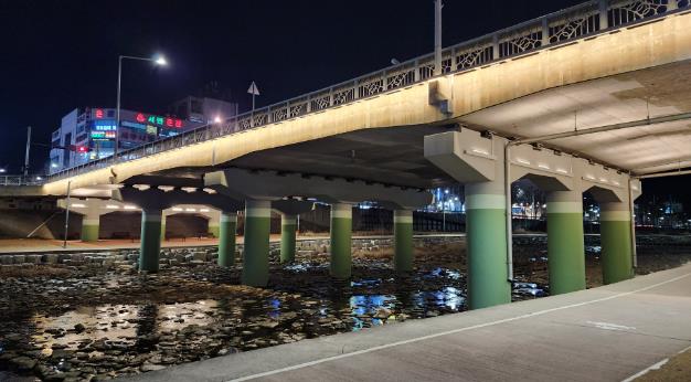 조명의 색온도는 편안하고 따뜻한 느낌의 3000k로 적용하여 하천경관과 조화로우면서도 아름다운 황금빛의 교량 야간경관이 탄생하게 되었다.
