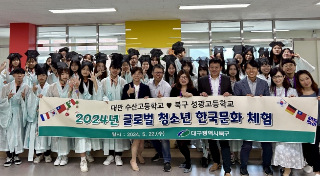 [뉴스서울] 대구 북구청은 5월 22일 수요일 청소년 국제교류 활성화 프로그램의 일환으로 관내 성광고와 대만 수산고 학생을 대상으로 글로벌 청소년 한국문화체험을 실시했다.