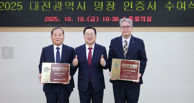 [뉴스서울] 대전시는 10일 시청 중회의실에서 2025년‘대전광역시 명장’으로 선정된 2명에게 인증서와 인증패를 수여했다.