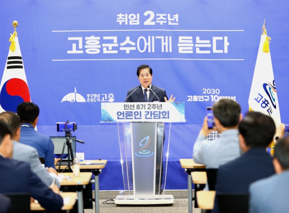 [뉴스서울] 고흥군이 27일 군청 우주홀에서 언론인과 간부 공무원 등 90여 명이 참석한 가운데 민선 8기 2주년 언론인 간담회를 개최했다.