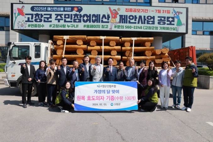 [뉴스서울] 고창군산림조합은 3일 가정의 달을 맞이하여 군에서 조림사업을 하기 위해 벌채를 하고 임야에서 발생한 소나무로 만든 원목효도의자 100여개를 고창군에 기증했다.