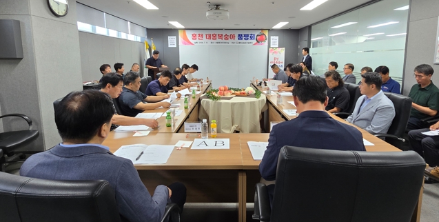 이날 품평회에서는 중도매인, 홍천복숭아연구회 임원진, 홍천군수가 참석하여 블라인드 식미 테스트, 도매시장 평가 기준 및 유통 현황 확인, 중도매인 추천 상품화 방안 도출 등을 공유했다.
