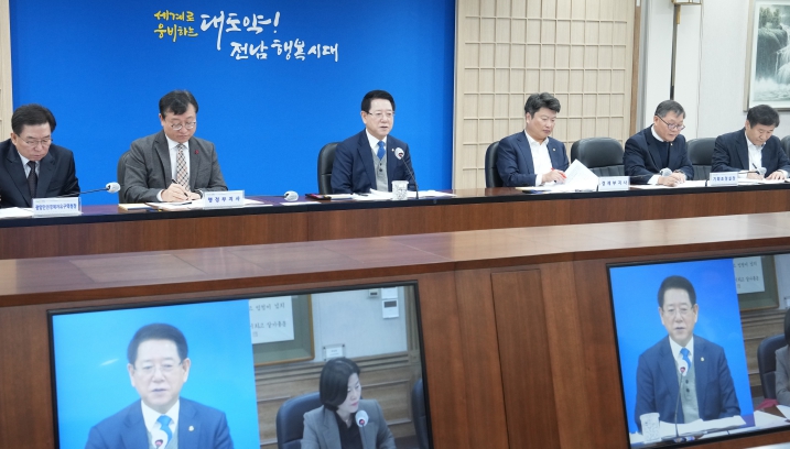 ▲ 김영록 전라남도지사가 10일 오전 도청 서재필실에서 실국장 정책회의를 주재하고 있다. |