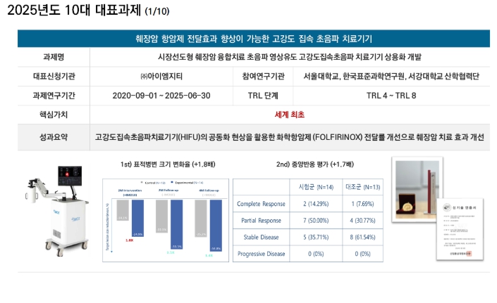 지난해 3월 선정된 2024년 10대 대표과제 중 국내 최초로 개발된 혈액투석 의료기기는 일반 환자를 대상으로 성공적인 치료를 수행하는 등 뛰어난 성과를 창출한 만큼, 올해 선정된 10대 대표과제도 의료기기 국산화와 세계 시장 진출을 촉진하고, 환자들의 삶의 질 향상에 기여할 것으로 기대된다.