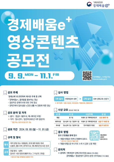 [뉴스서울] 기획재정부는 디지털 경제교육 플랫폼'경제배움e+'를 홍보하고 ‘경제교육’의필요성에 대한 인식을 높이기 위해 전 국민을 대상으로 ‘경제배움e+ 영상 콘텐츠 공모전’을 개최한다.