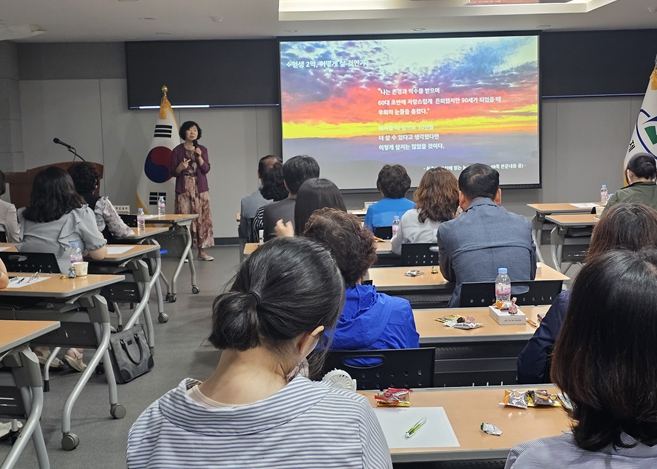 교육은 ‘동 지역사회보장협의체의 역할 이해와 발전 방향’이라는 주제로 민지선 전 서울시 성북구 복지문화국장이 강사로 나서, 동 지역사회보장협의체의 역할에 대한 방향 제시와 함께 현장에서의 다양한 경험과 노하우를 공유했다.