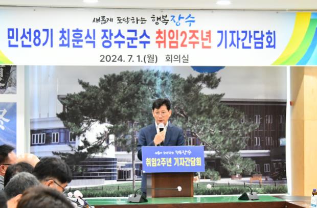 [뉴스서울] 민선8기 2주년을 맞아 최훈식 장수군수는 1일 군청 회의실에서 기자간담회를 개최해 주요 성과를 설명하고, 후반기 역점 전략을 제시했다.