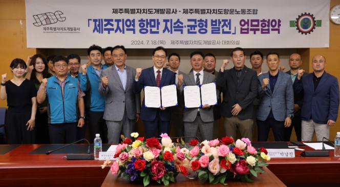 이날 업무협약은 제주개발공사 백경훈 사장과 제주항운노조 박남진 위원장을 비롯해 업무담당자 20여명이 참석했다.