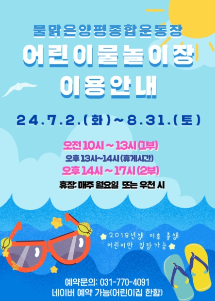 양평공사 신범수 사장은 “올여름 무더위를 피해 많은 이용객이 어린이물놀이장을 찾을 것으로 예상돼 시설에 대한 각종 안전점검을 실시했고, 향후 현장에도 안전요원을 상시 배치하는 등 준비에 만전을 기하겠다”며 “온 가족이 함께 즐길 수 있는 양평 여름 관광지로 거듭나기를 바란다”고 말했다.