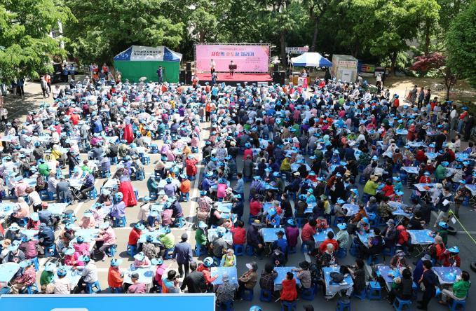 [뉴스서울] 대구 중구는 남산종합사회복지관 주관으로 3일 남산종합사회복지관에서 어르신과 자원봉사자 등 1,500여 명이 참석한 가운데 제52회 어버이날 맞이 사랑의 효도상 차리기 행사를 진행했다.