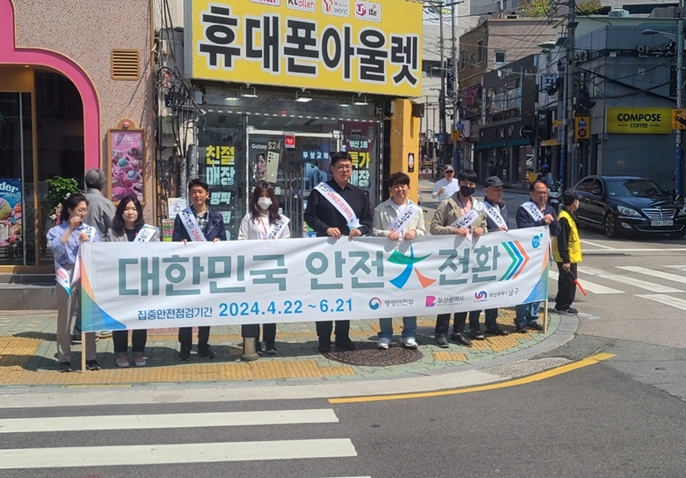 [뉴스서울] 부산 남구는 2024년 집중안전점검을 성공적으로 수행하기 위해 5월 10일 대연사거리 일대에서 10:30 ~ 11:00까지 안전점검의 날 캠페인과 연계한 집중안전점검 캠페인을 진행했다.