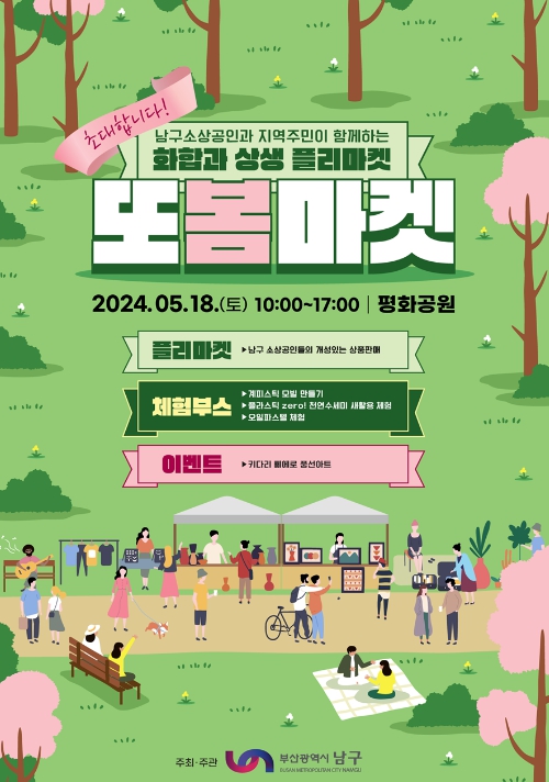 [뉴스서울] 부산 남구는 오는 5월 18일, 남구 소상공인 홍보장터(또봄마켓)를 개최한다. 소상공인 영업이익 증대와 내수 활력 제고를 위해 기획된 이번 행사는 오전 10시부터 오후 5시까지 남구 평화공원 산책로 일원에서 진행된다.