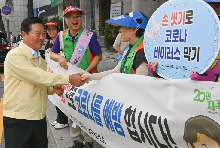 이번 캠페인은 최근 지속적으로 증가하는 코로나19 감염병 예방 수칙을 구민들에게 널리 알리고, 건강수칙 실천을 독려하기 위해 남구 새마을회, 남구 자율방재단 및 관계 공무원 등 120여 명이 참여했다.