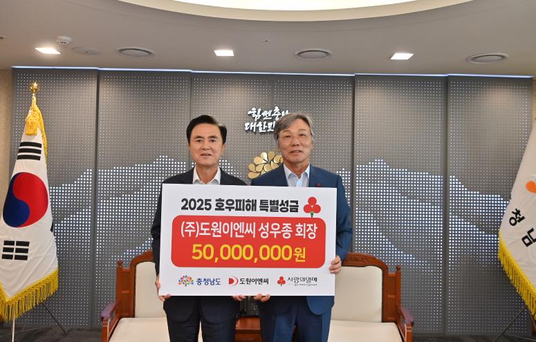 [뉴스서울] 충남도는 ㈜도원이엔씨로부터 호우 피해복구 지원 성금 5000만원을 전달받았다고 21일 밝혔다.