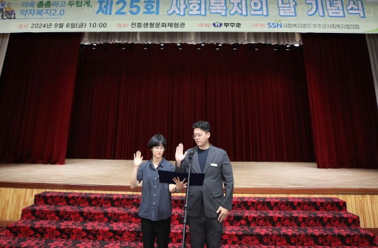 기념식에서는 무주노인종합복지관 장경숙 선임생활지원사가 사회복지 실현과 발전에 기여한 공을 인정받아 무주군수 표창을 받았으며, 무주반딧불시니어클럽 김영미 노인일자리 담당자가 무주군의회 의장상을, 무주장애인종합복지관 이수호 사회복지사가 한국사회복지협의회장상을 수상했다.