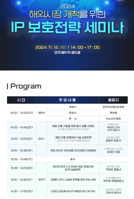 ▲ 2024 해외시장 개척을 위한 IP 보호전략 세미나 포스터 |